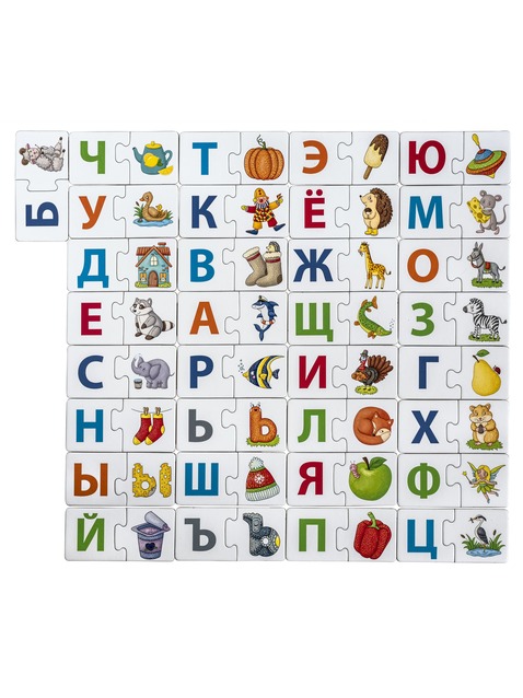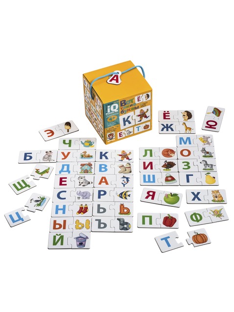 Из них ребёнок может легко собирать пары буква-картинка и слова-пазлы.